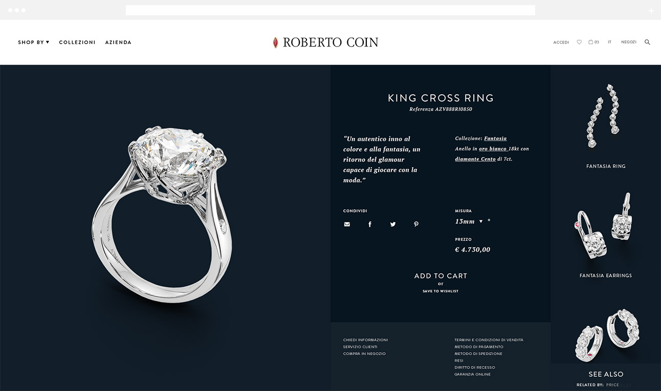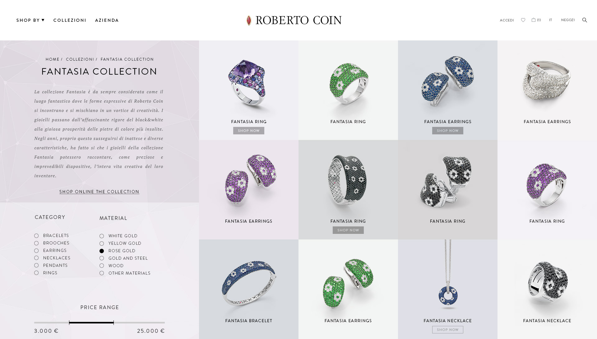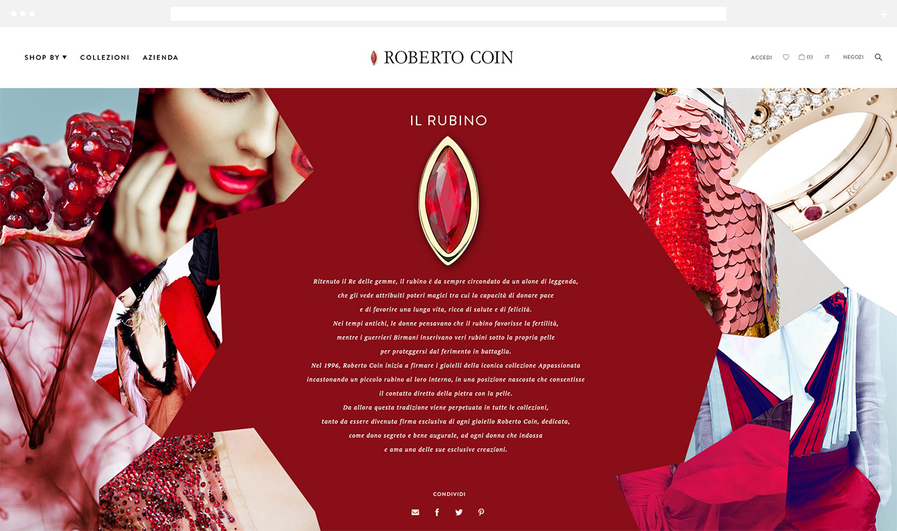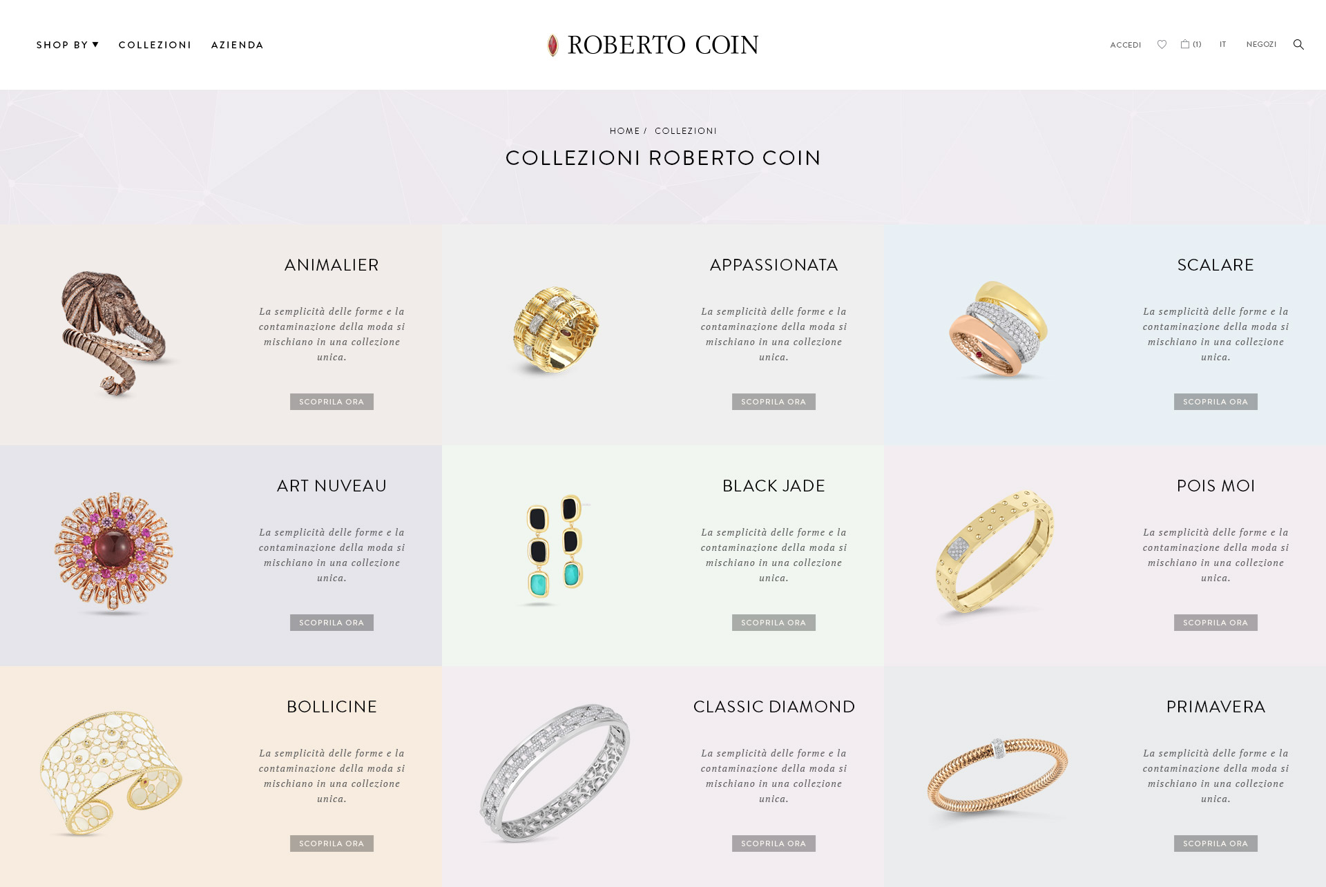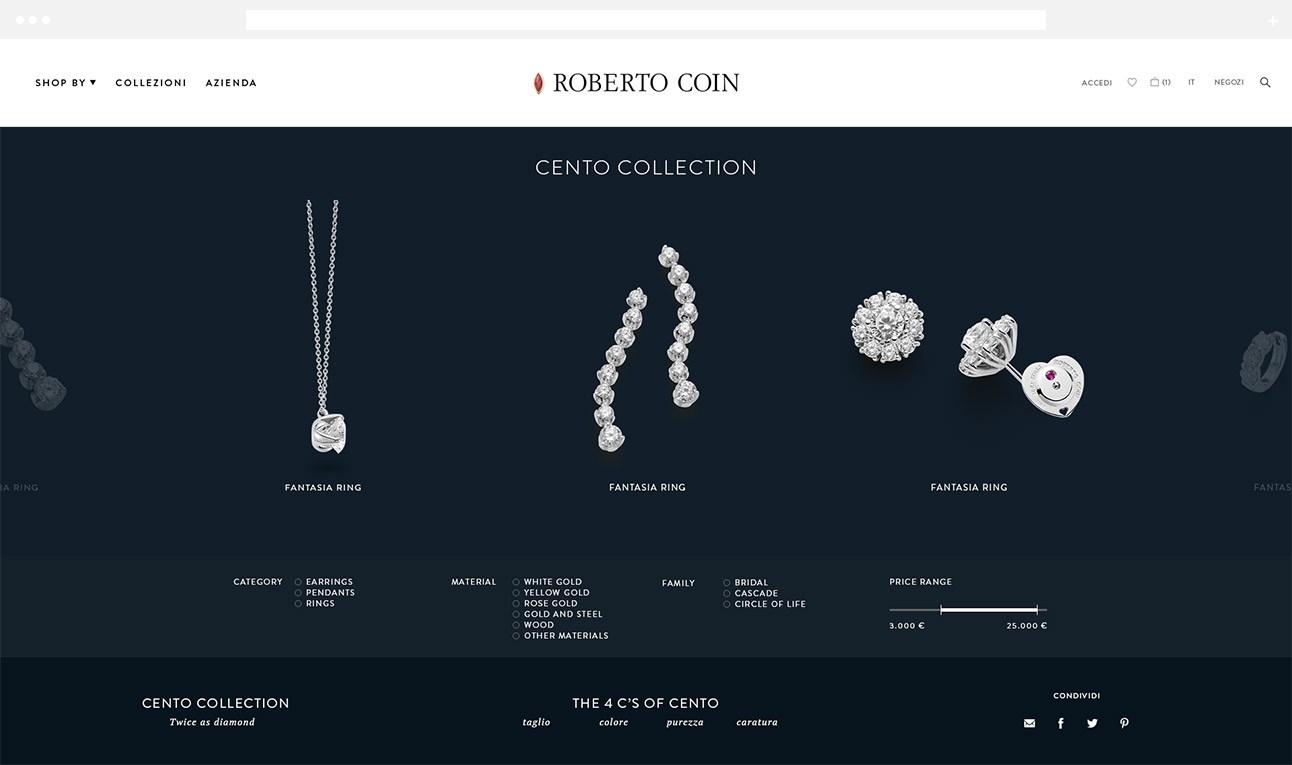 Un’altro aspetto estetico richiesto era che il sito non avesse altri colori che quelli dei gioielli.