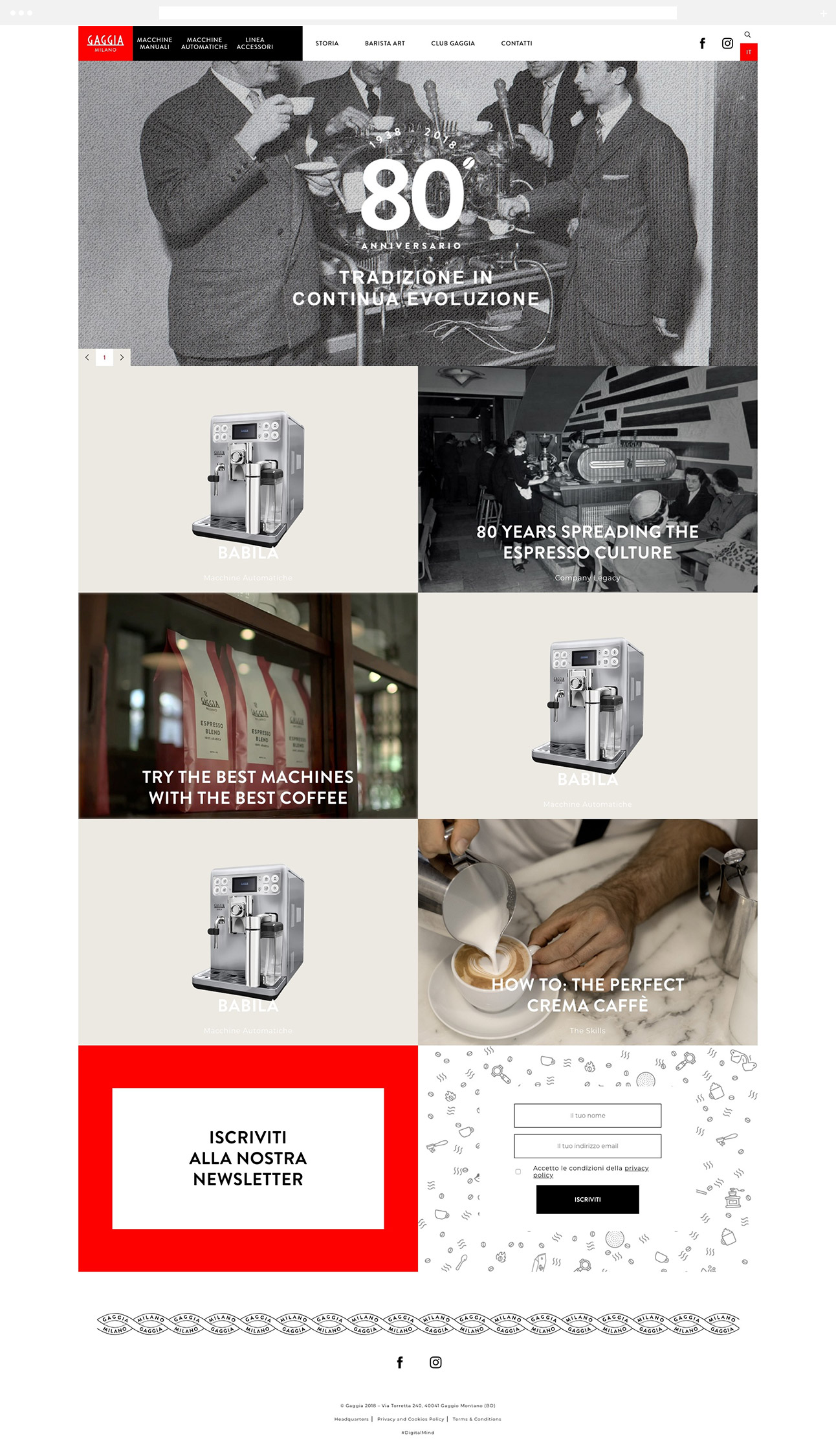 We were asked to re-design the Gaggia Milano website, in more detail for the brand branch related to the home coffee machines.
