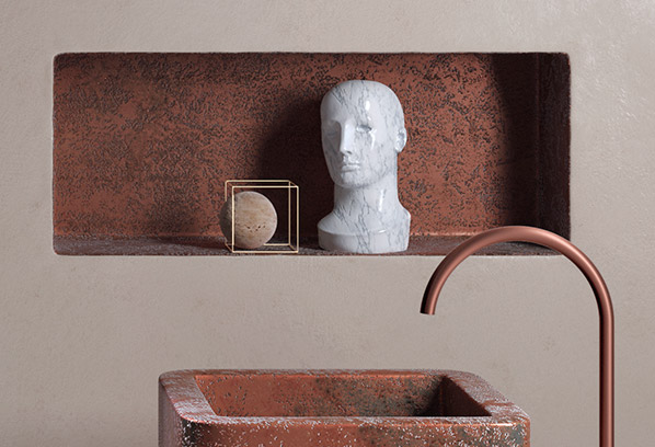 This is what we can get by mixing the wrapping vocation of Microtopping concrete with precious elements by Purometallo in its corten steel variation.